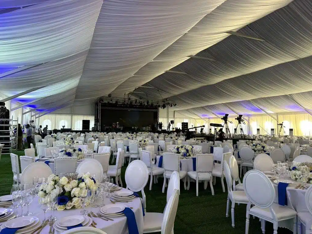 快进到 2022 年 8 月的磁性光环,一个传奇故事就此展开——我们自豪地戴上了活动帐篷供应商的帽子。安哥拉政府正处于紧急关头,需要一个规模巨大的帐篷解决方案。为什么?一场盛大的选举宴会即将来临,这可不是一般的晚会。做好准备,因为它注定要容纳 2400 名灵魂的庞大集会。在寻求完美解决方案的过程中,他们被我们的可靠性和实力承诺所吸引,敲开了我们的大门。这个方程式令人望而生畏:一点点紧迫感,一点点规模,以及错综复杂的分配、规模、容量和复杂性。我们欣喜地推出了我们的标准活动帐篷系列——一首创新的交响曲。L & M 系列以宽阔的手臂展开,而 C 系列以其清晰的跨度魅力,吸引着与会者陶醉在无限制的运动中。结果?这场精心编排赢得了安哥拉政府和活动参加者的欢呼。这是我们的承诺,我们承诺提供顶级活动帐篷解决方案,提升全球活动的盛况。