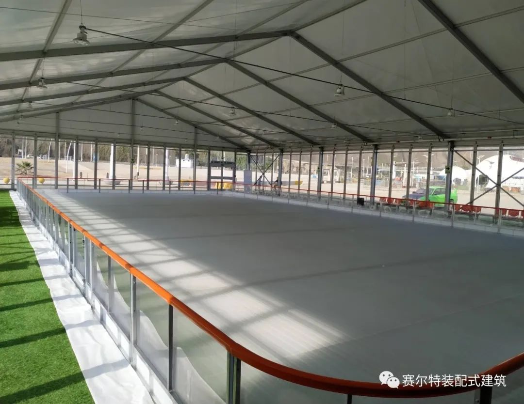 秘鲁国际溜冰场宽度达到20米*45米,采用航空级T6061 - T6高强度铝合金型材来搭建稳定的框架结构,边墙同样用十字撑加固,四周墙体则使用了双层中空玻璃,可抗10级大风。