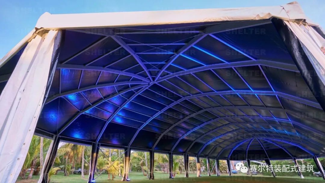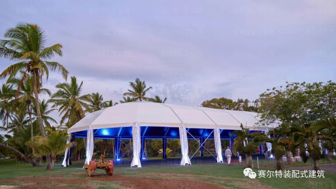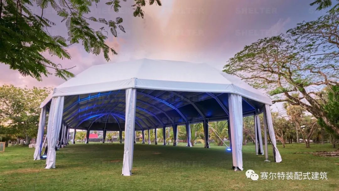 赛尔特活动篷房,采用的是独立多拱形篷房,合理地增大户外空间感;主型材采用航空级6061/T6铝合金,具有强度大、耐腐蚀、性价比高等优势,能够抵抗10级风力。